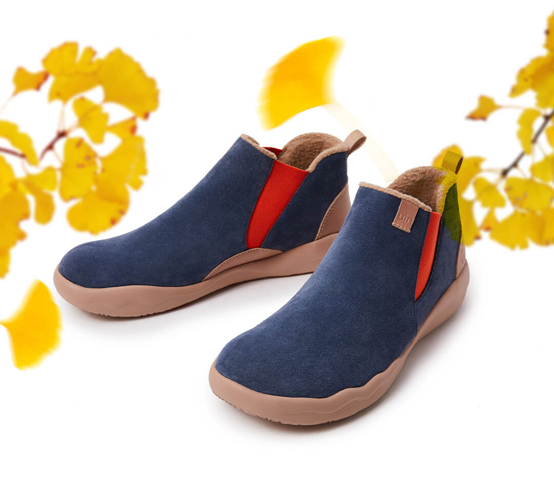 UIN Footwear Men (Pre-sale) Granada Deep Blue Cow Suede Boots Men Canvas loafers