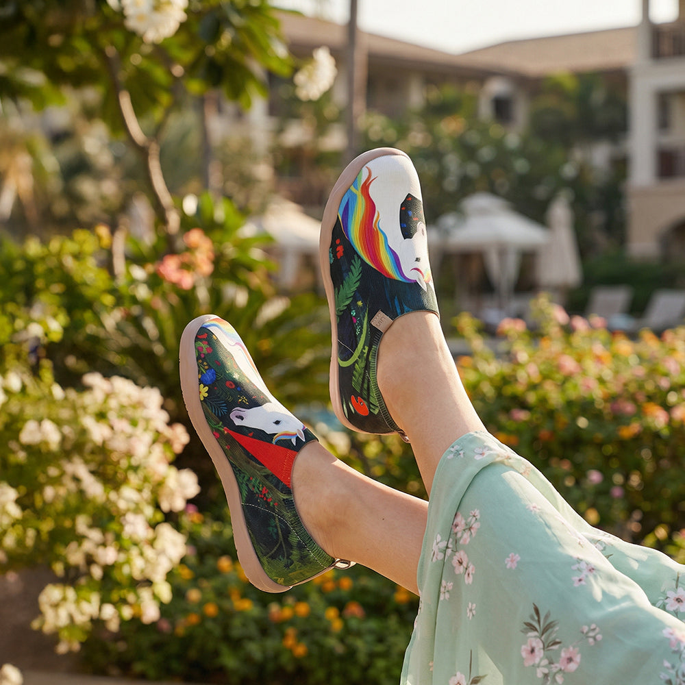 UINは、スペインのトレド発の旅行とアーティスティックなシューズブランド!「アートを通して旅行で個性を身にまとうという楽しさを発見する」というコンセプトのもと、トラベルシューズを通して社会的メッセージやアート表現を共有できるというプロジェクト。UINのキャッチフレーズは「U IN Story」。U IN Story直訳すると「あなたは旅行しているストーリー」:旅行で「履くアート」と同時に自由とおしゃれも楽しめそうですという意味がある。スペインのデザイナーFernando Acevedoのデザインのハイライトは旅行で自由と愛情と情熱を追いかける。UINシューズはシンプルでとても合わせやすいながらも、可愛さと快適性のどちらも叶えるおしゃれですよねぇ?