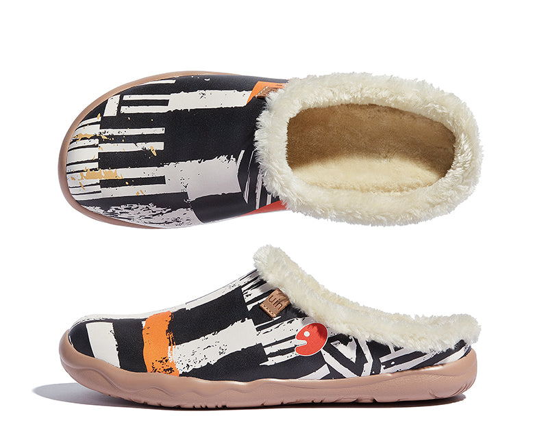 厚くした柔らかいフェイクカシミア裏地は足を暖かくし、室内も室外も着用可能、人目を惹きつける柄とフリースで注目を集められる。
